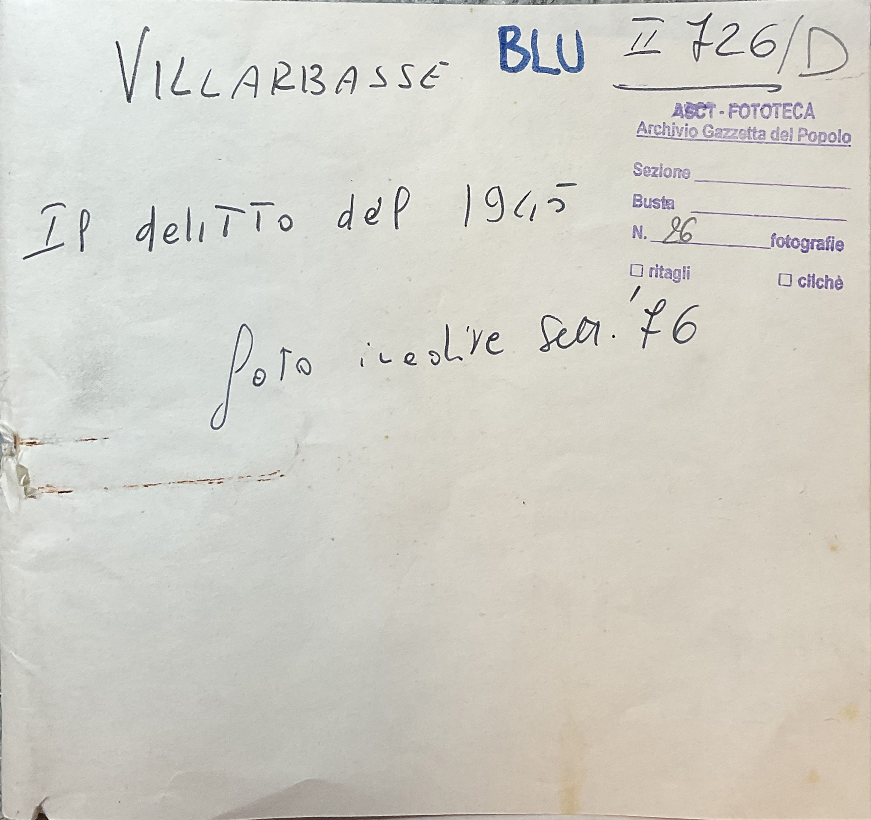 «Villarbasse cascina fatale / nella vasta padana pianura / chi si ferma a guardar le sue mura / presto un segno di croce si fa. / Con le mani arrossate di sangue / li derubano e poi come vedi / sospingendoli avanti coi piedi / in un pozzo li gettano giù./ Non c'è traccia, neppure un indizio / la questura non sa come fare / Ma chi è morto non può più parlare / gli assassini scoprire non può.» Così la composizione di un cantastorie ricorda la strage.