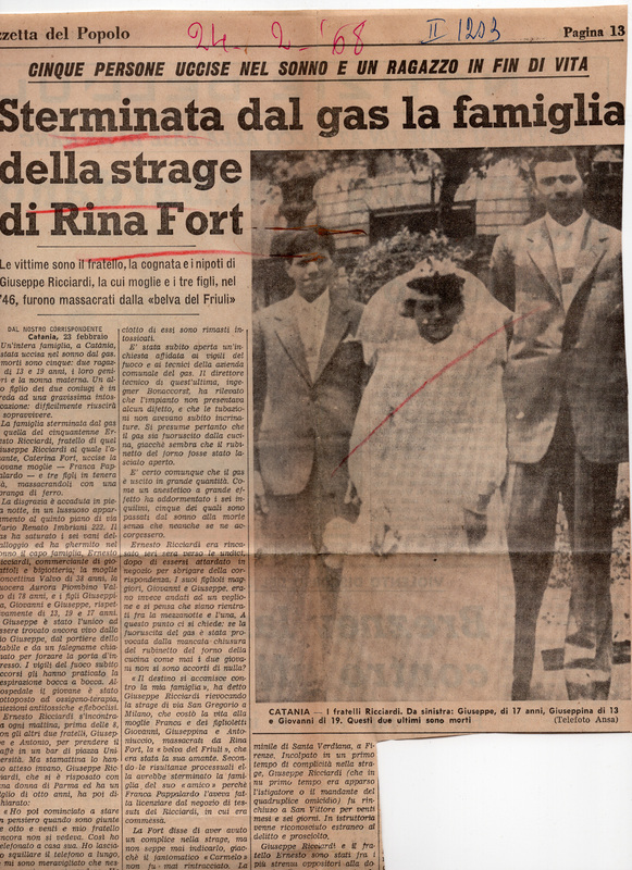 I nipoti di Giuseppe Ricciardi, vittime di una fuga di gas nel loro appartamento a Catania