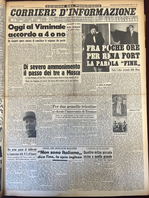 Fra poche ore per Rina Fort la parola "fine"