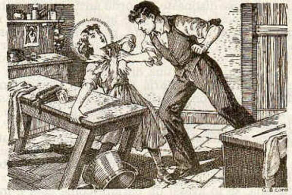 Maria Goretti giace ferita dopo essere stata pugnalata da Serenelli
