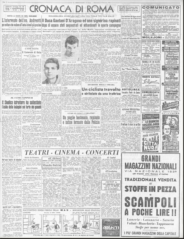 Il Duca Gaetani D'Aragona ed una signorina rapinati dopo essere stati sequestrati ed abbandonati in aperta campagna