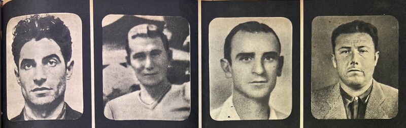 I responsabili della “strage di Villarbasse”, Giovanni Puleo, Francesco La Barbera e Giovanni D’Ignoti fotografati prima della fucilazione alle Basse di Stura (TO)